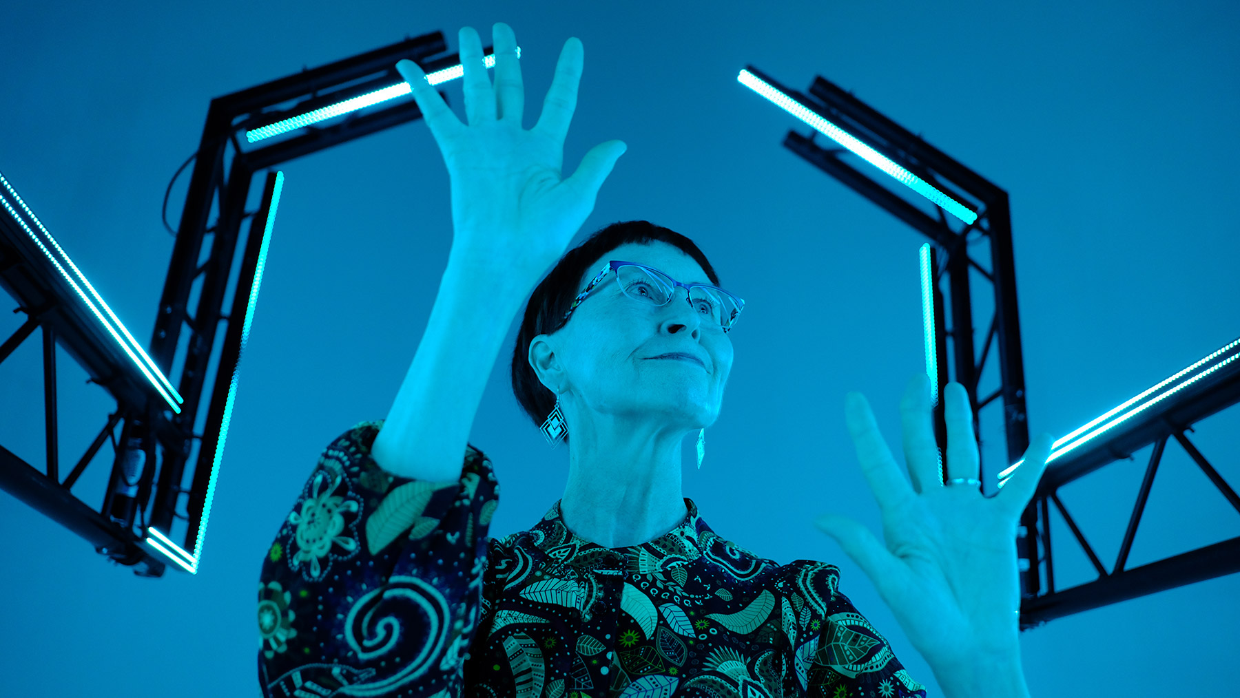 MUT-AT1-0NS is an immersive sound and light experience which allows participants the ability to coauthor a short piece of music as they move through a physical space, triggering sensors that create a composition, with sampled voices and music.